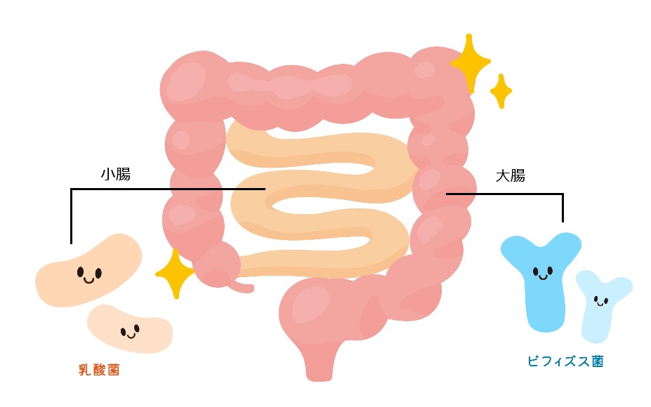 乳酸菌とビフィズス菌は、腸内のどこにいるかも異なります。