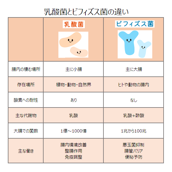 そして、腸内環境のバランスを保つうえで欠かせないのが、乳酸菌とビフィズス菌になります。